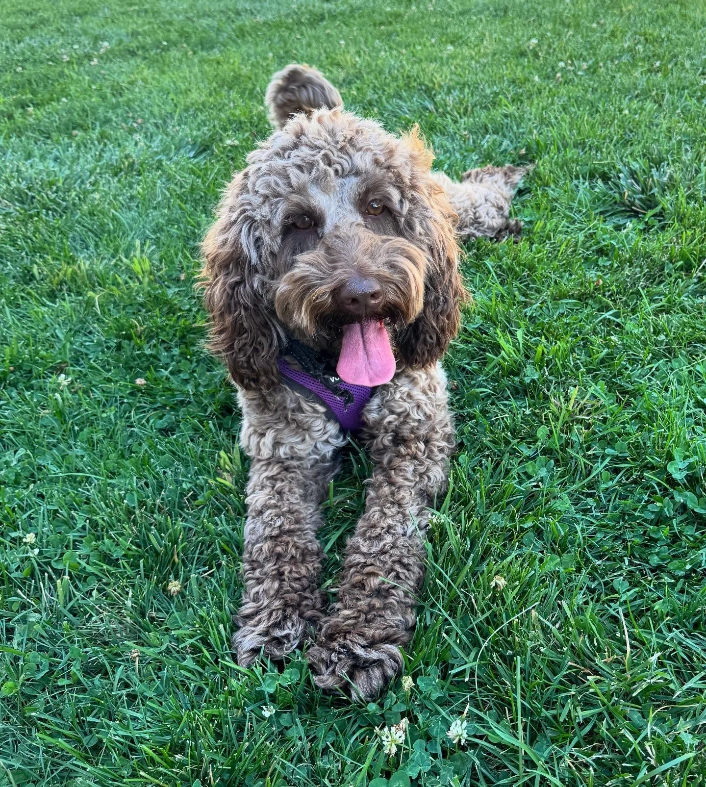 Chelsea is a medium-sized female labradoodle weighing in at 36 pounds. Chelsea is multigenerational, hypoallergenic and her genetics are clear by parentage.